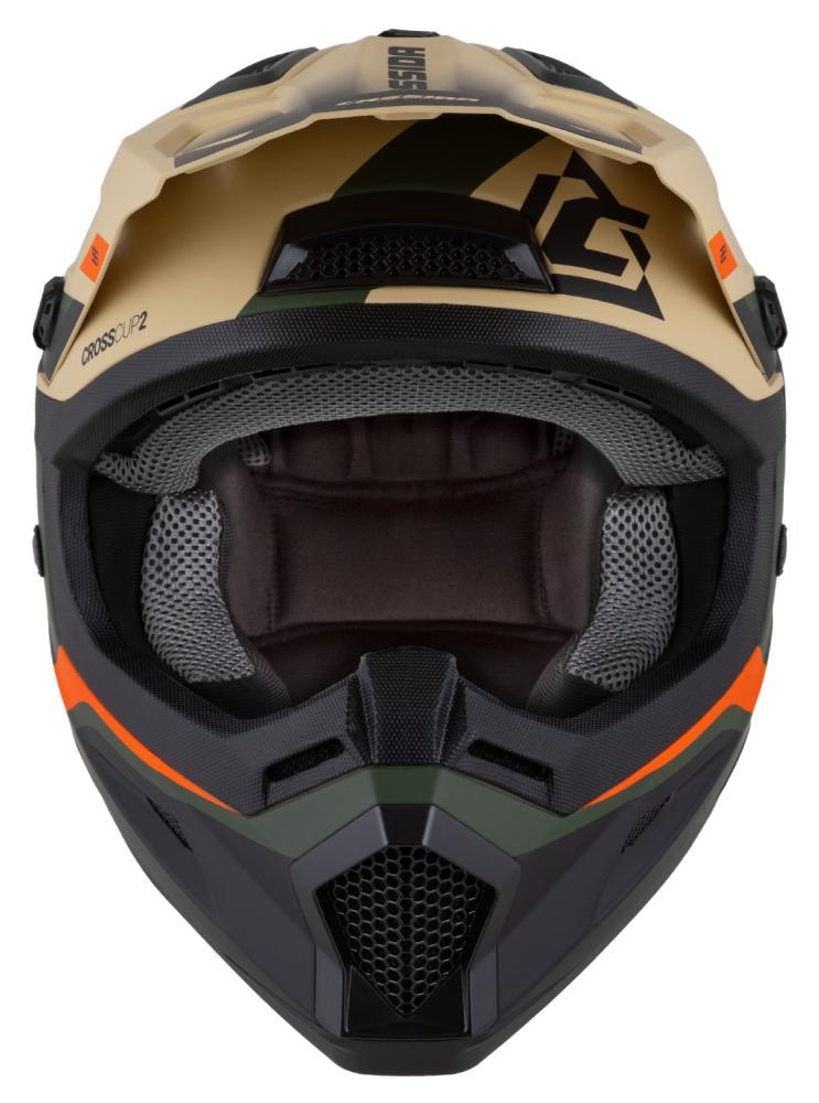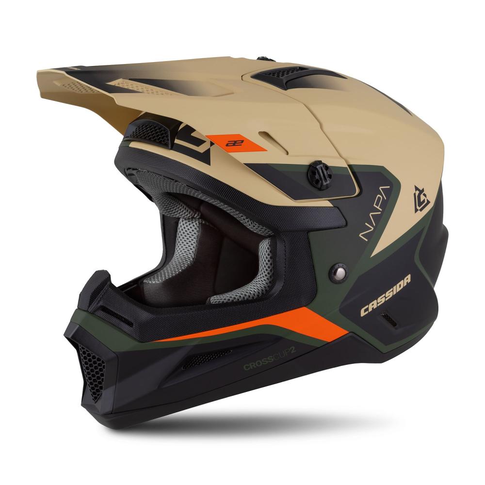 Detská motokrosová prilba CASSIDA CROSS CUP 2 NAPA, piesková - zelená oranžová