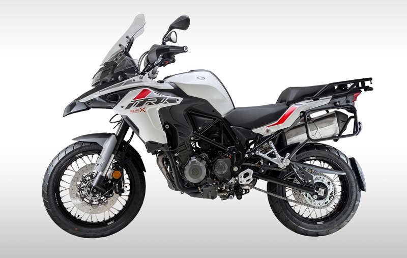 Benelli TRK 502 Adventure – má oproti verzii Traveler vypletané kolesá s hrubšími offroadovými pneumatikami a hlbším dezénom a hlavne predné koleso rozmeru 19".